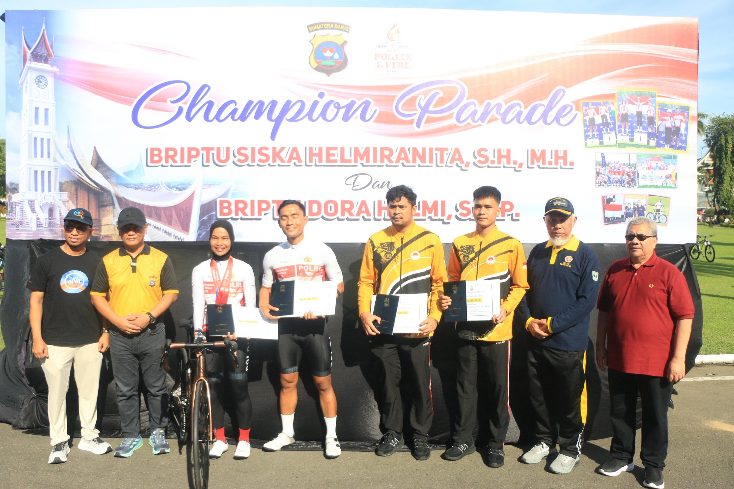 Acara Champion Parade juga dihadiri oleh sejumlah tokoh penting, di antaranya Gubernur Sumbar Mahyeldi Ansharullah, Ketua DPRD Provinsi Sumbar Muhidi, unsur TNI, pimpinan BUMD, serta berbagai komunitas olahraga dari Kota Padang. Para pejabat memberikan apresiasi langsung atas dedikasi dan semangat dua atlet Polwan tersebut.